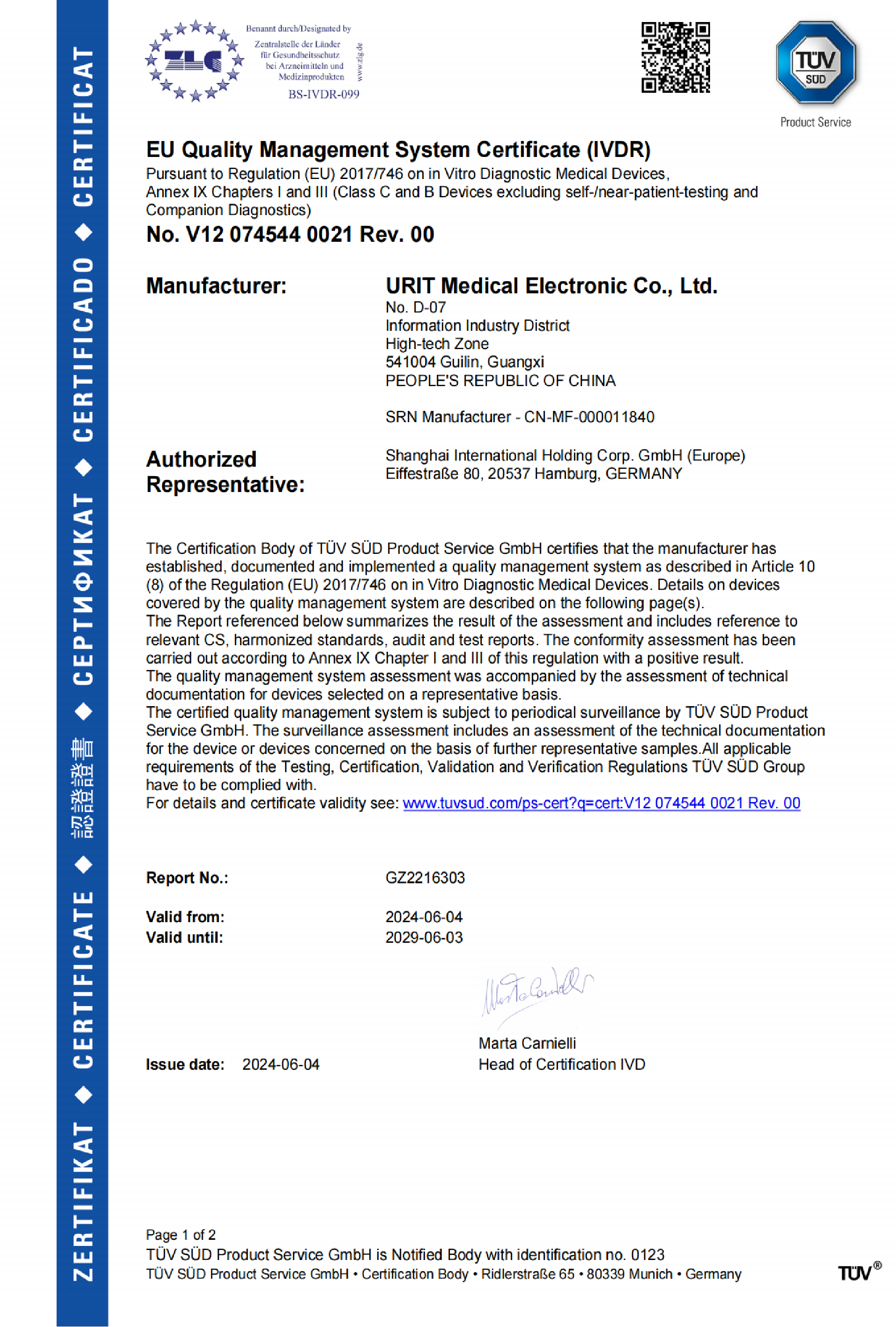 Our compliance with IVDR not only bolsters global confidence in the URIT brand but also opens up broader avenues for delivering our state-of-the-art diagnostic solutions throughout the European Union and internationally.